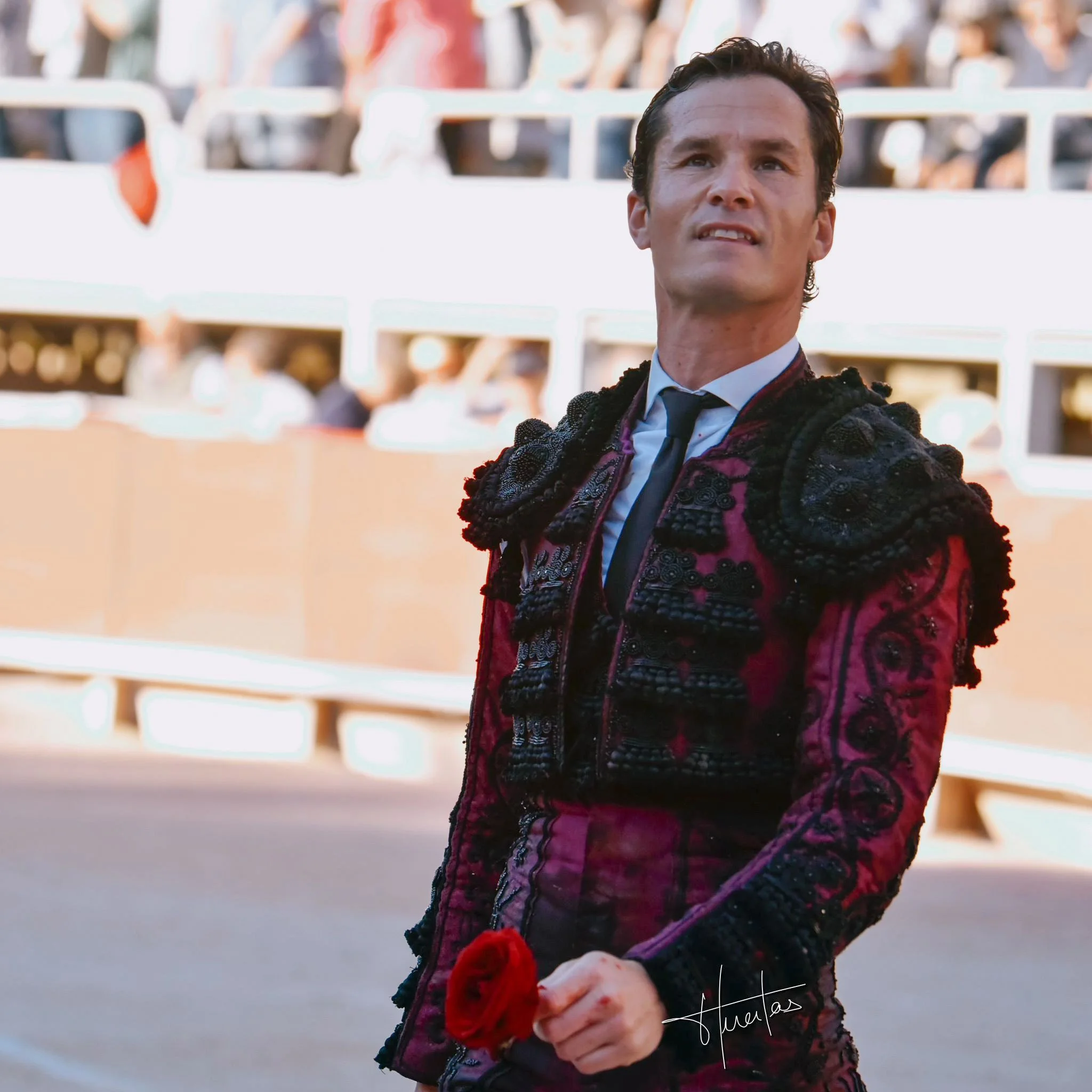 La mala suerte que le persiguió toda la tarde quizá tuviese que ver con las horribles medias negras que llevaba, contó en los micrófonos de ONETORO que por ser Semana Santa. Con el corbatín y las espiguilllas negras se hubiera resuelto lo del luto sin necesidad de estas ocurrencias.